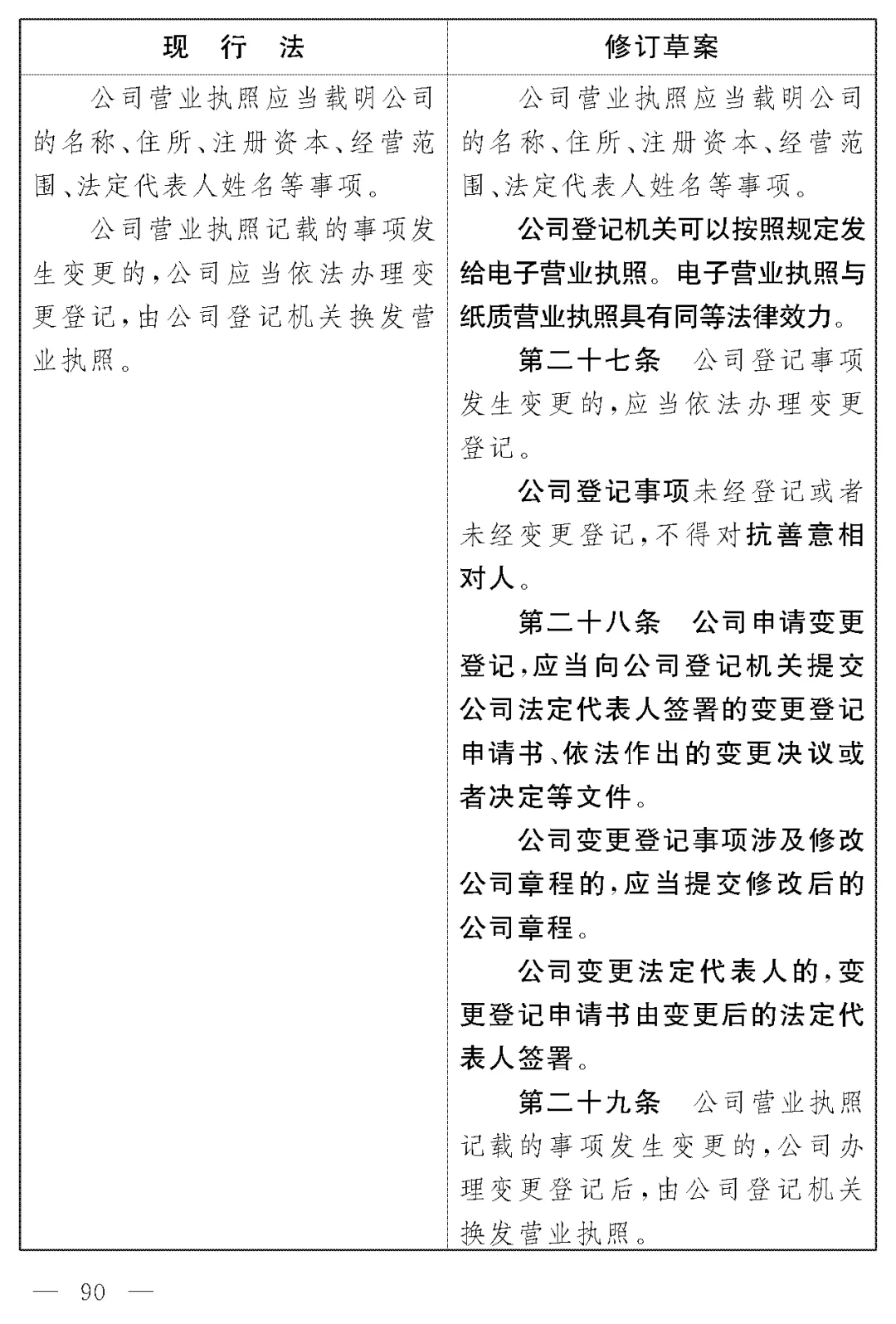 深入總結黨的十八大以來(lái)持續優(yōu)化營(yíng)商環(huán)境改革成果,完善公司登記制度,進(jìn)一步簡(jiǎn)便公司設立和退出。一是,新設公司登記一章,明確公司設立登記、變更登記、注銷(xiāo)登記的事項和程序;同時(shí)要求公司登記機關(guān)優(yōu)化登記流程,提高登記效率和便利化水平。二是,充分利用信息化建設成果,明確電子營(yíng)業(yè)執照、通過(guò)統一的企業(yè)信息公示系統發(fā)布公告、采用電子通訊方式作出決議的法律效力(修訂草案第二十六條、第三十四條、第七十六條等)。三是,擴大可用作出資的財產(chǎn)范圍,明確股權、債權可以作價(jià)出資(修訂草案第四十三條、第一百條);放寬一人有限責任公司設立等限制,并允許設立一人股份有限公司(修訂草案第九十三條)。四是,完善公司清算制度,強化清算義務(wù)人和清算組成員的義務(wù)和責任(修訂草案第二百二十八條、第二百二十九條、第二百三十四條);增加規定,經(jīng)全體股東對債務(wù)履行作出承諾,可以通過(guò)簡(jiǎn)易程序注銷(xiāo)登記(修訂草案第二百三十五條)。