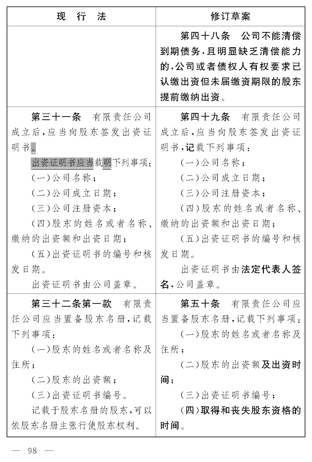 同時(shí),加強對股東出資和股權交易行為的規范,維護交易安全。一是,增加股東欠繳出資的失權制度,規定:股東未按期足額繳納出資,經(jīng)公司催繳后在規定期限內仍未繳納出資的,該股東喪失其未繳納出資的股權(修訂草案第四十六條、第一百零九條)。二是,增加有限責任公司股東認繳出資的加速到期制度,規定:公司不能清償到期債務(wù),且明顯缺乏清償能力的,公司或者債權人有權要求已認繳出資但未屆繳資期限的股東提前繳納出資(修訂草案第四十八條)。三是,明確瑕疵股權轉讓時(shí)轉讓方、受讓方的出資責任(修訂草案第八十九條)。