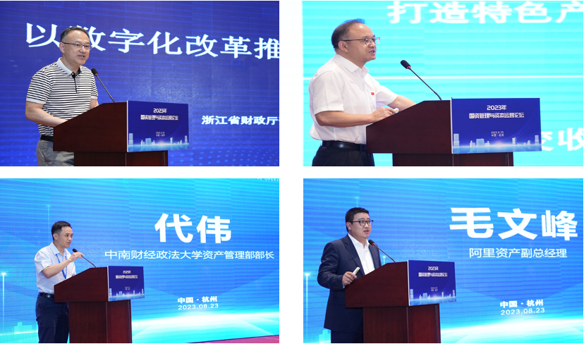 圍繞“國有資產(chǎn)管理數字化轉型與盤(pán)活實(shí)踐”的研討中,浙江省財政廳資產(chǎn)管理處副處長(cháng)潘朝暉、湖南省財政廳資產(chǎn)管理處處長(cháng)朱利平、中南財經(jīng)政法大學(xué)資產(chǎn)管理部部長(cháng)代偉、阿里資產(chǎn)副總經(jīng)理毛文峰分別分享了浙江省以數字化改革推進(jìn)國有資產(chǎn)盤(pán)活、湖南省國有資產(chǎn)盤(pán)活實(shí)踐、高校國有資產(chǎn)管理及盤(pán)活利用、全域數字化服務(wù)國有資產(chǎn)交易的管理改革探索。