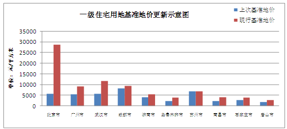 部分一、二線(xiàn)城市基準地價(jià)更新示意圖